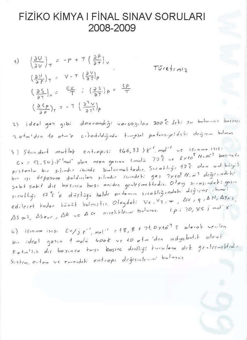 Vize ve Final Soruları / Cumhuriyet Üniversitesi / Fizikokimya Dersi