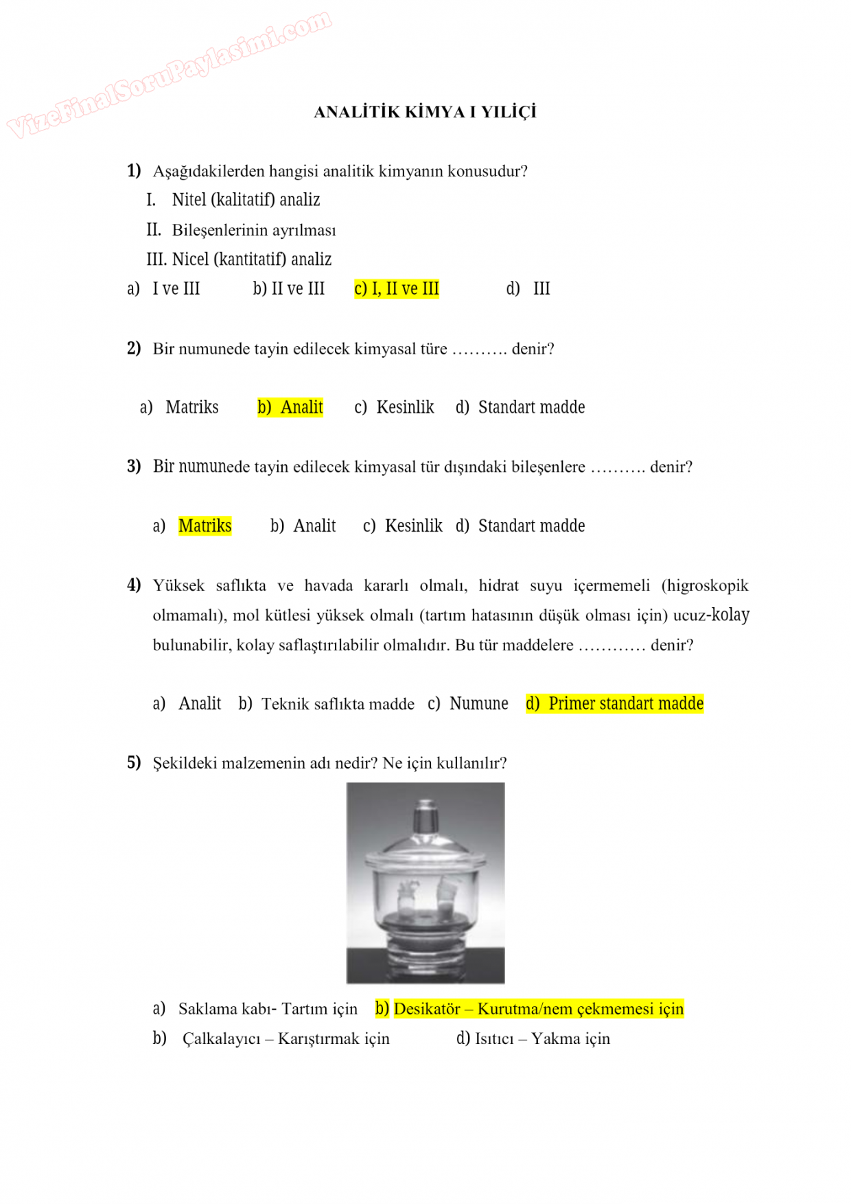 analitik kimya Vize Soru ve Cevapları Vize Soruları - Test GERİ DÖN
