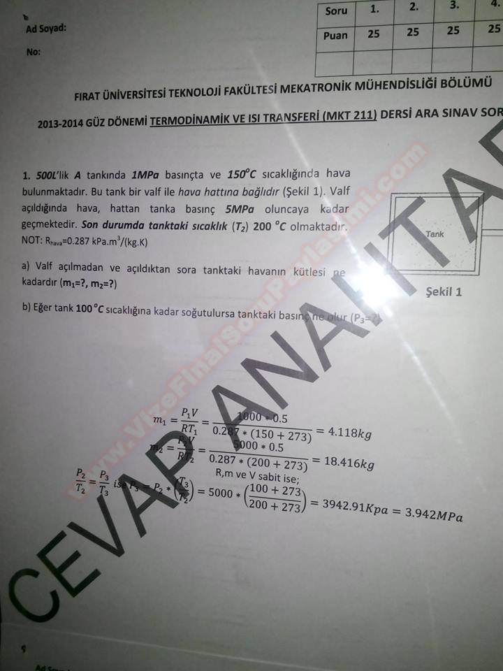 Vize ve Final Soruları / Fırat Üniversitesi / Termodinamik ve Isı Transferi