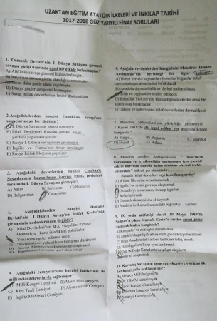 Atatürk İlkeleri ve İnkilap Tarihi -1 Final Soruları - Uzaktan Eğitim 3-01-2018, 17:31