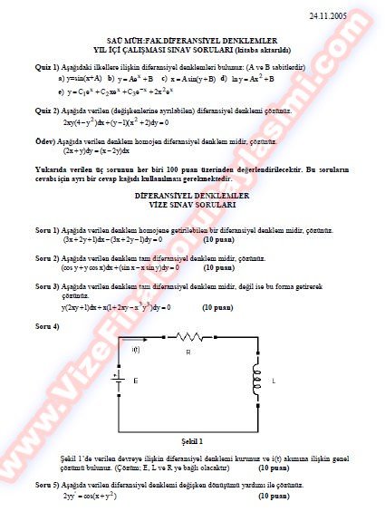 Diferansiyel Denklemler Vize Soruları Ve Cevapları - 24.11.2005
