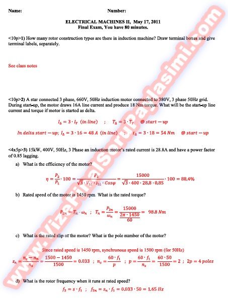 Elektrik Makinaları-2 Final Soruları Ve Cevapları - 17.05.2011