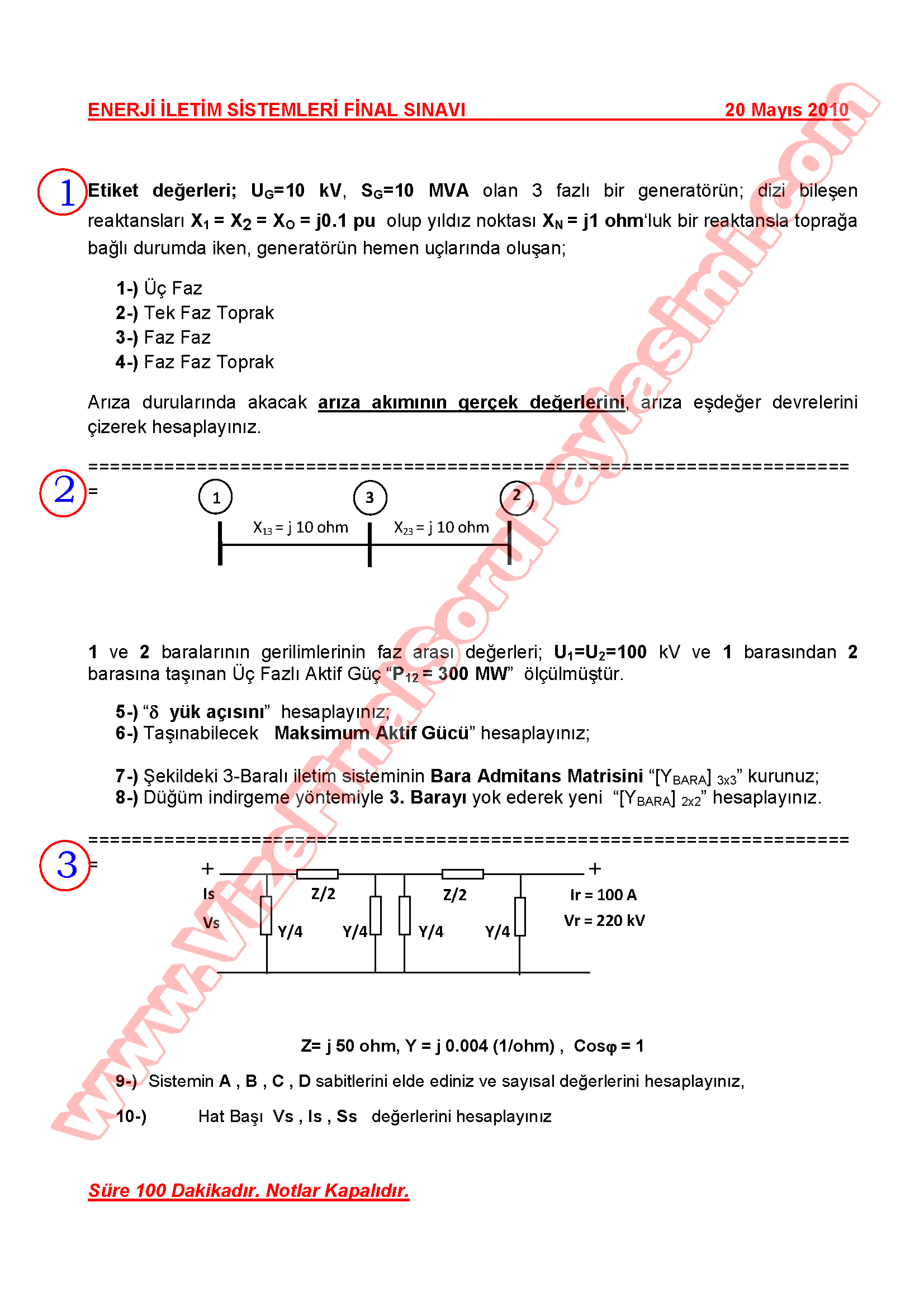 Enerji İletim Sistemleri Final Soruları Ve Cevapları - 20.05.2010