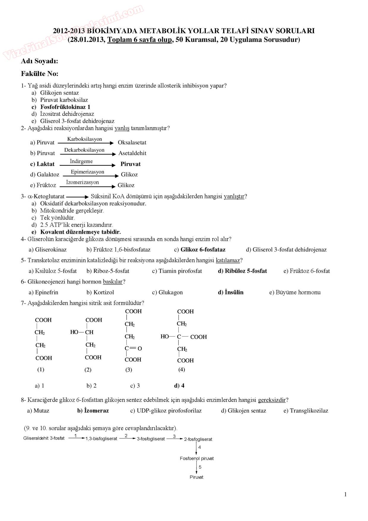 Vize ve Final Soruları / İstanbul Üniversitesi / Biyokimya Dersi