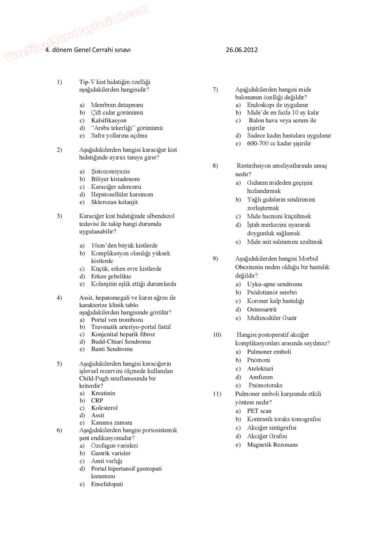 Vize ve Final Soruları / İstanbul Üniversitesi / Genel Cerrahi Dersi