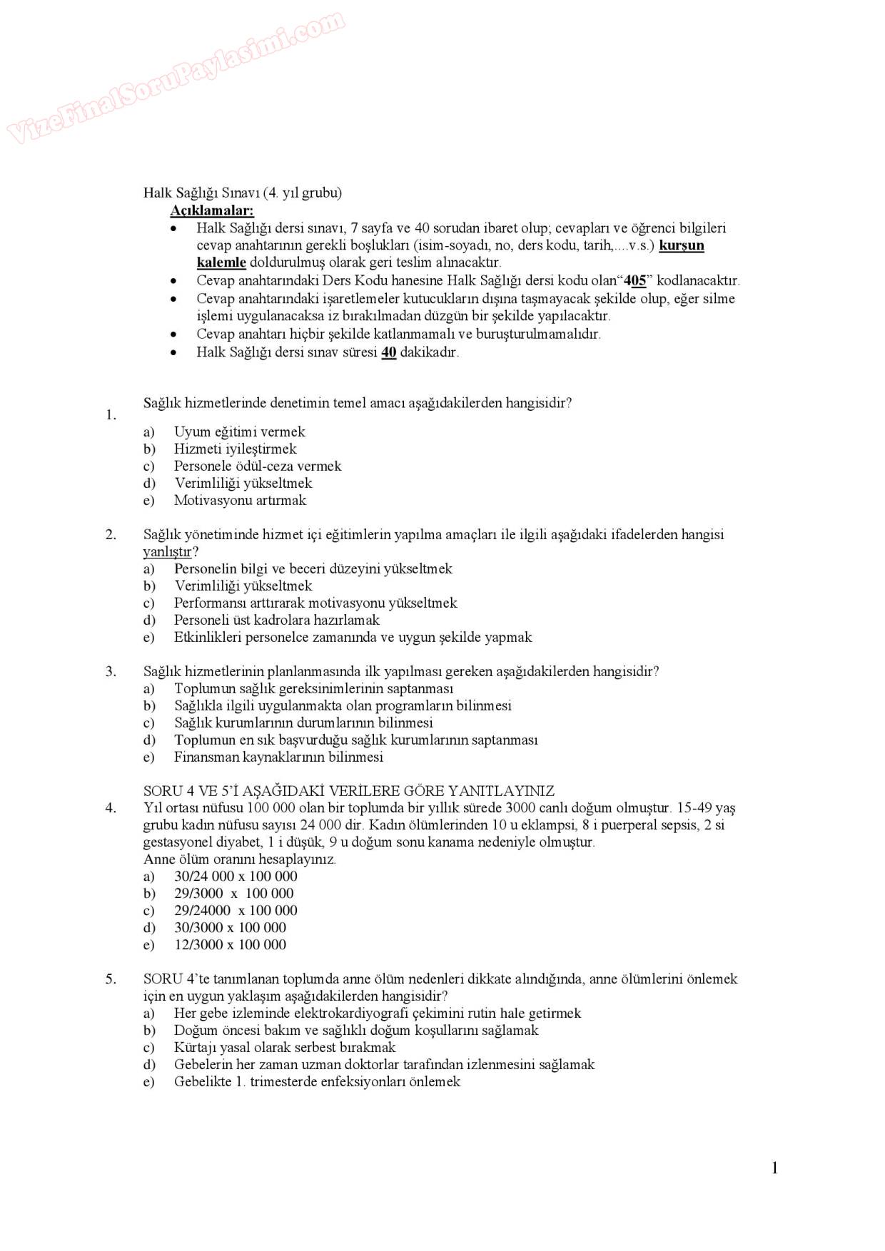 halk saglığı dersi vize final soruları GERİ DÖN-