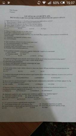 Su Temini ve Çevre Sağlığı Dersi Bütünleme Soruları 11-05-2015, 00:18
