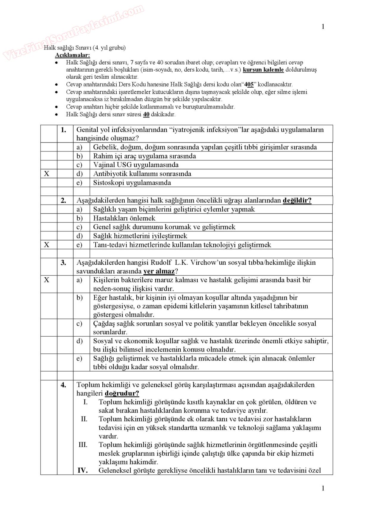 Vize ve Final Soruları / İstanbul Üniversitesi / Halk Sağlığı Dersi