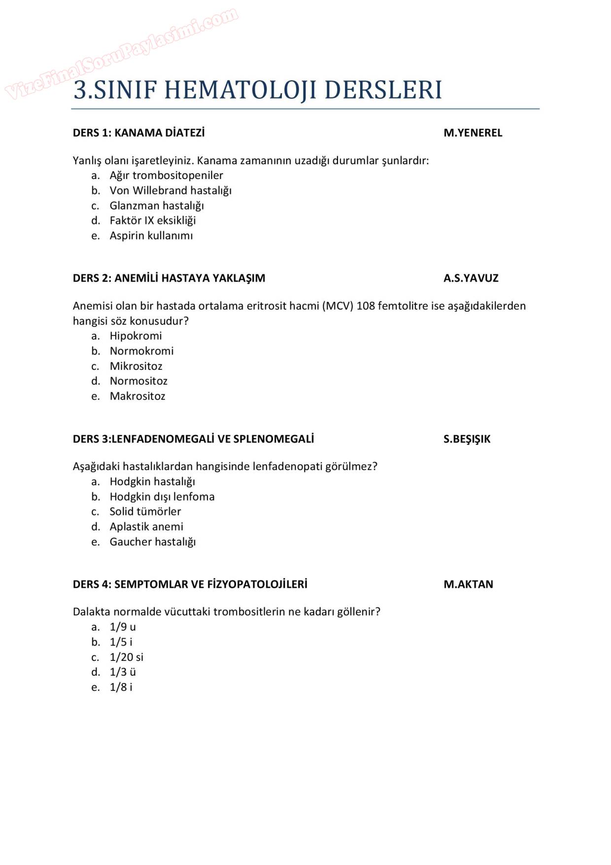 Hematoloji Dersi ve Soruları 10-10-2022, 18:16