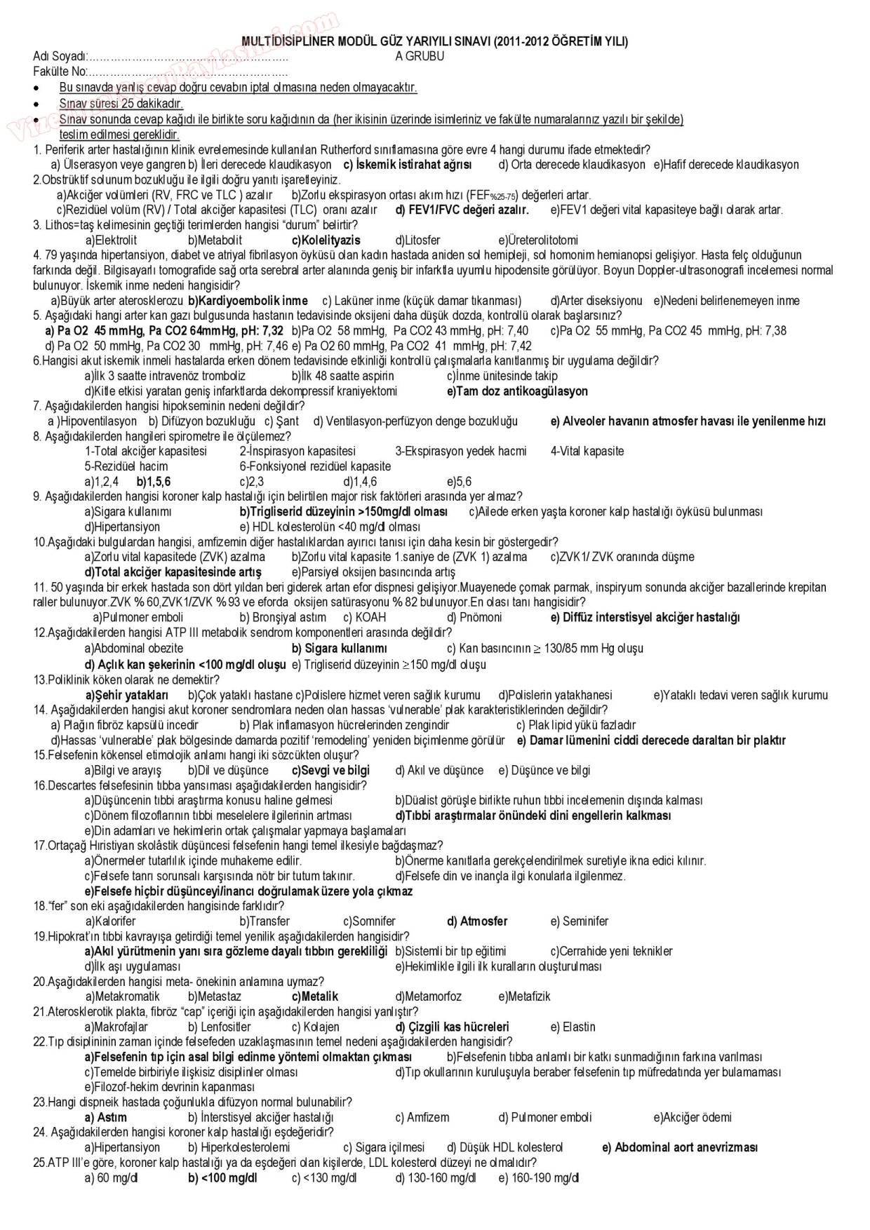 Vize ve Final Soruları / İstanbul Üniversitesi / İç Hastalıkları Multidisipliner Modül Ders Bitimi