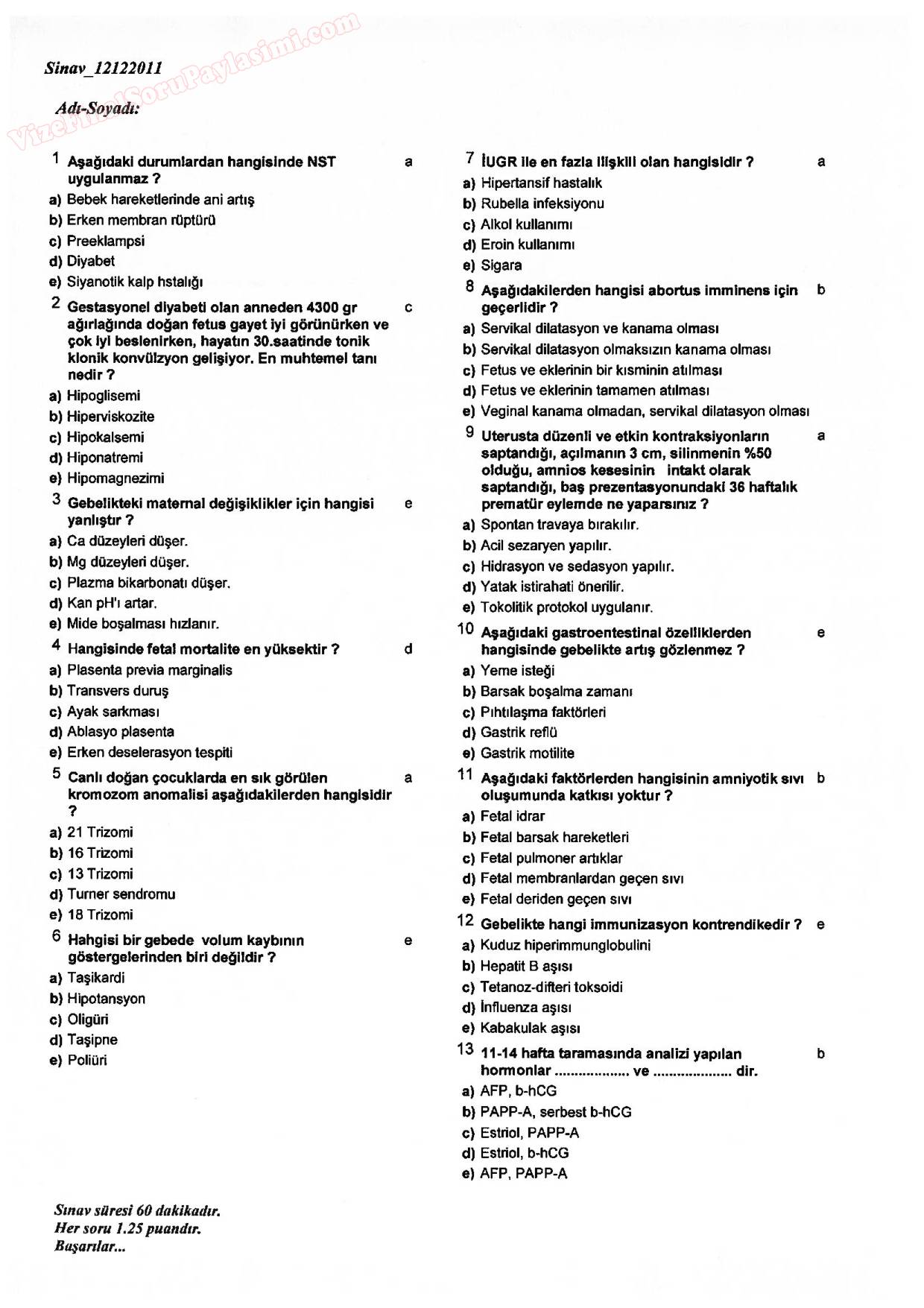 Vize ve Final Soruları / İstanbul Üniversitesi / Kadın Dogum Dersi