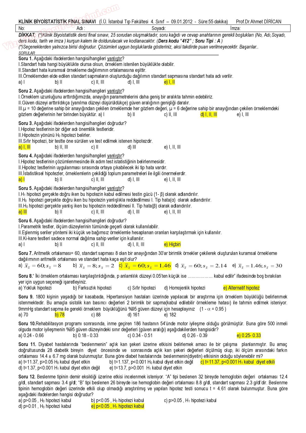 Biyoistatistik Dersi Final Soruları 24-10-2015, 00:11