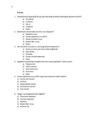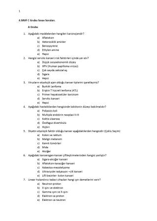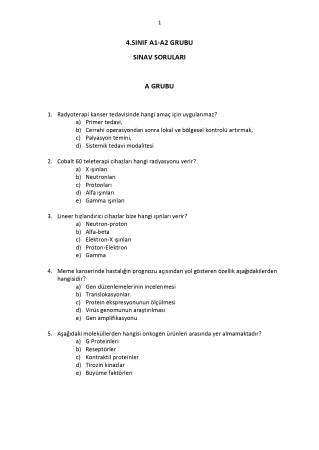 Radyasyon Onkolojisi C Grubu Sınav Soruları A Grubu