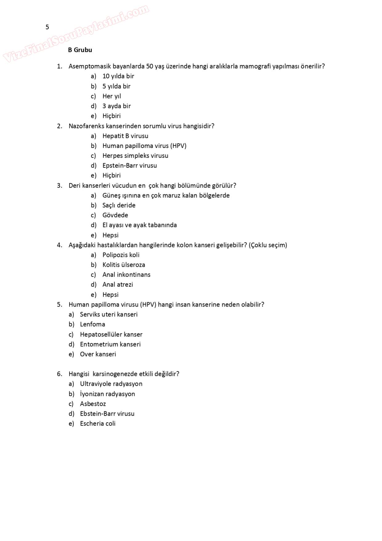 Radyasyon Onkolojisi C Grubu Sınav Soruları B Grubu