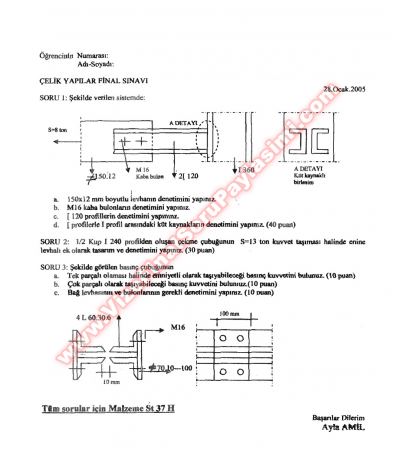 Çelik Yapılar Final Soruları - 2004 14-05-2015, 17:02