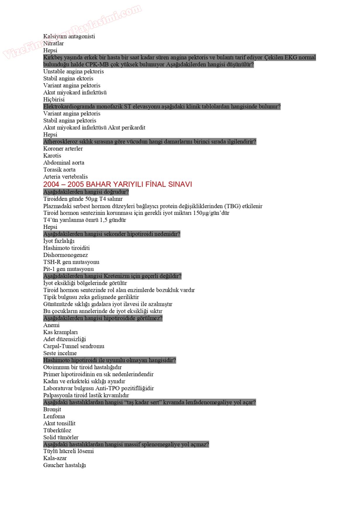Vize ve Final Soruları / İstanbul Üniversitesi / Semiyoloji Sınav Soruları