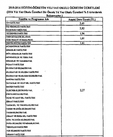 Yaz Okulu Öğretim Ücretleri - 2016 22-06-2016, 01:43