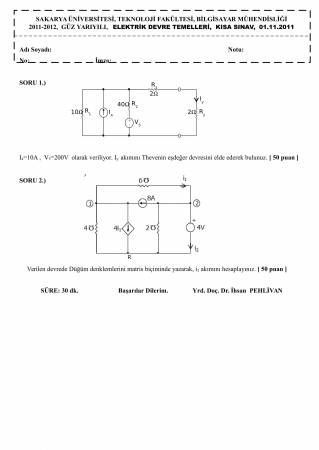 Elektrik devreleri 1 kısa sınav 16-11-2019, 09:46