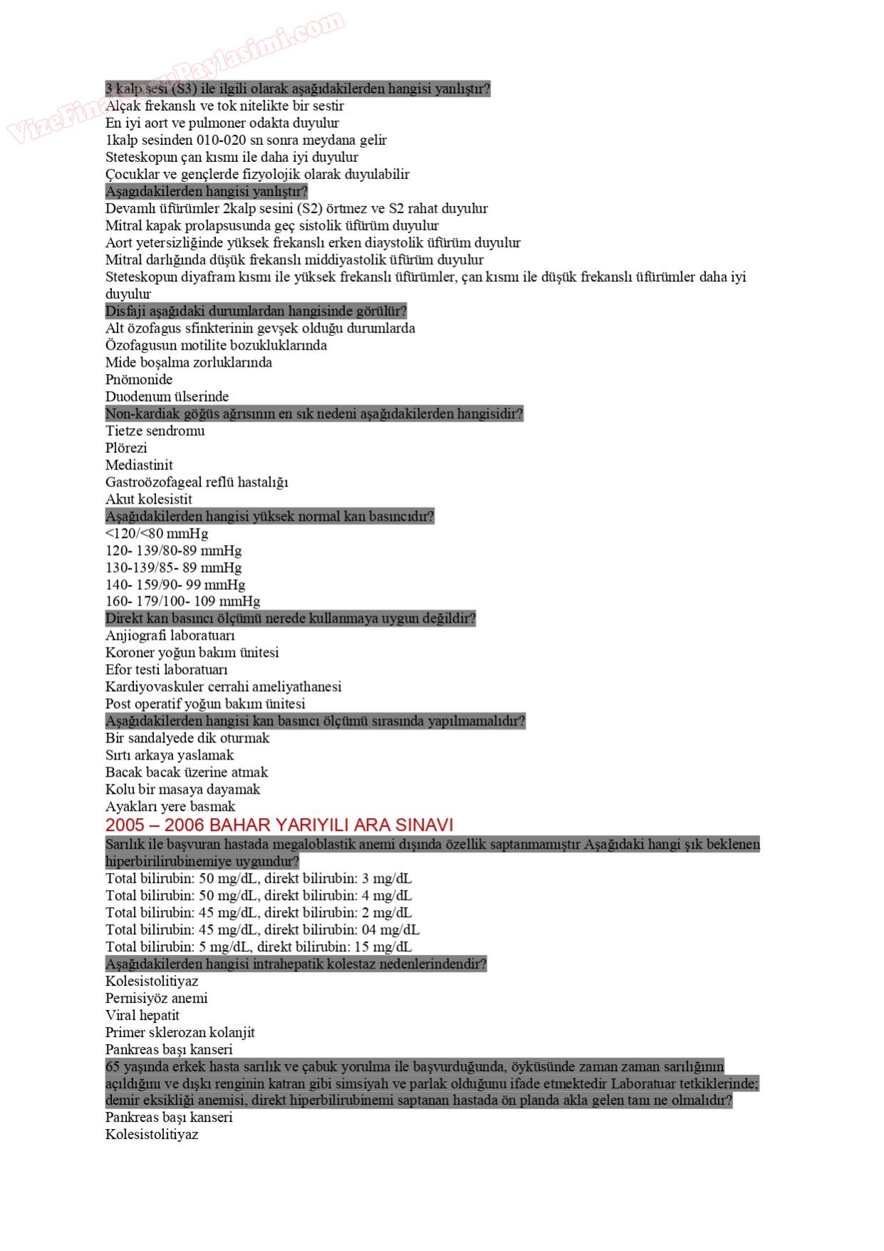 Vize ve Final Soruları / İstanbul Üniversitesi / Semiyoloji Sınav Soruları