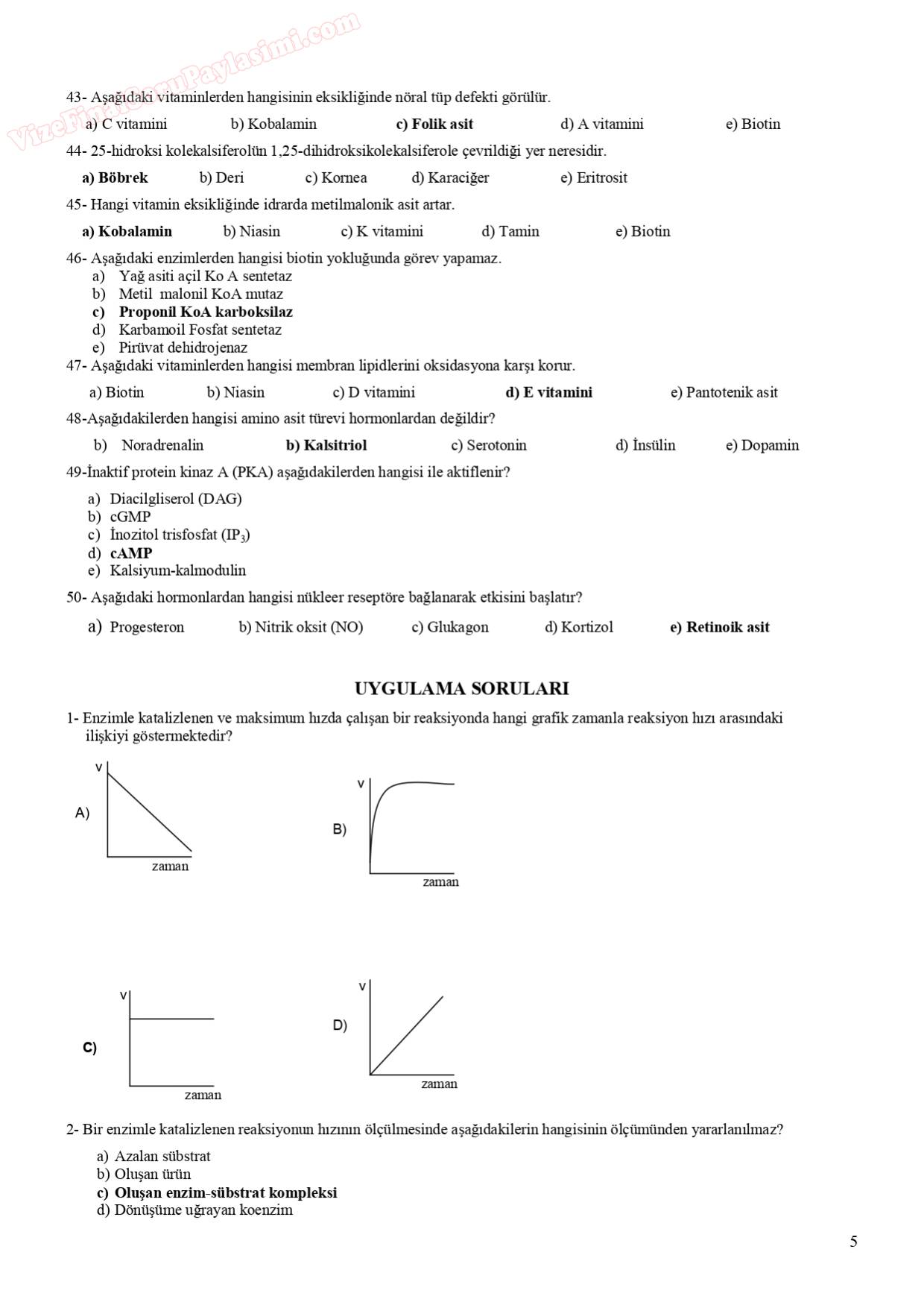 Vize ve Final Soruları / İstanbul Üniversitesi / Temel Biyokimya Sınav Soruları