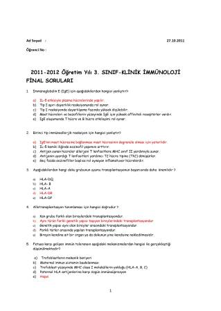 Klinik İmmünoloji Final Sınav Soruları 13-10-2022, 11:41