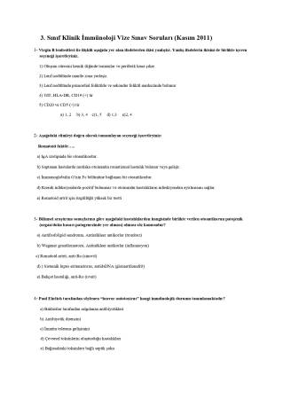 Klinik İmmünoloji Vize Sınav Soruları 13-10-2022, 11:50