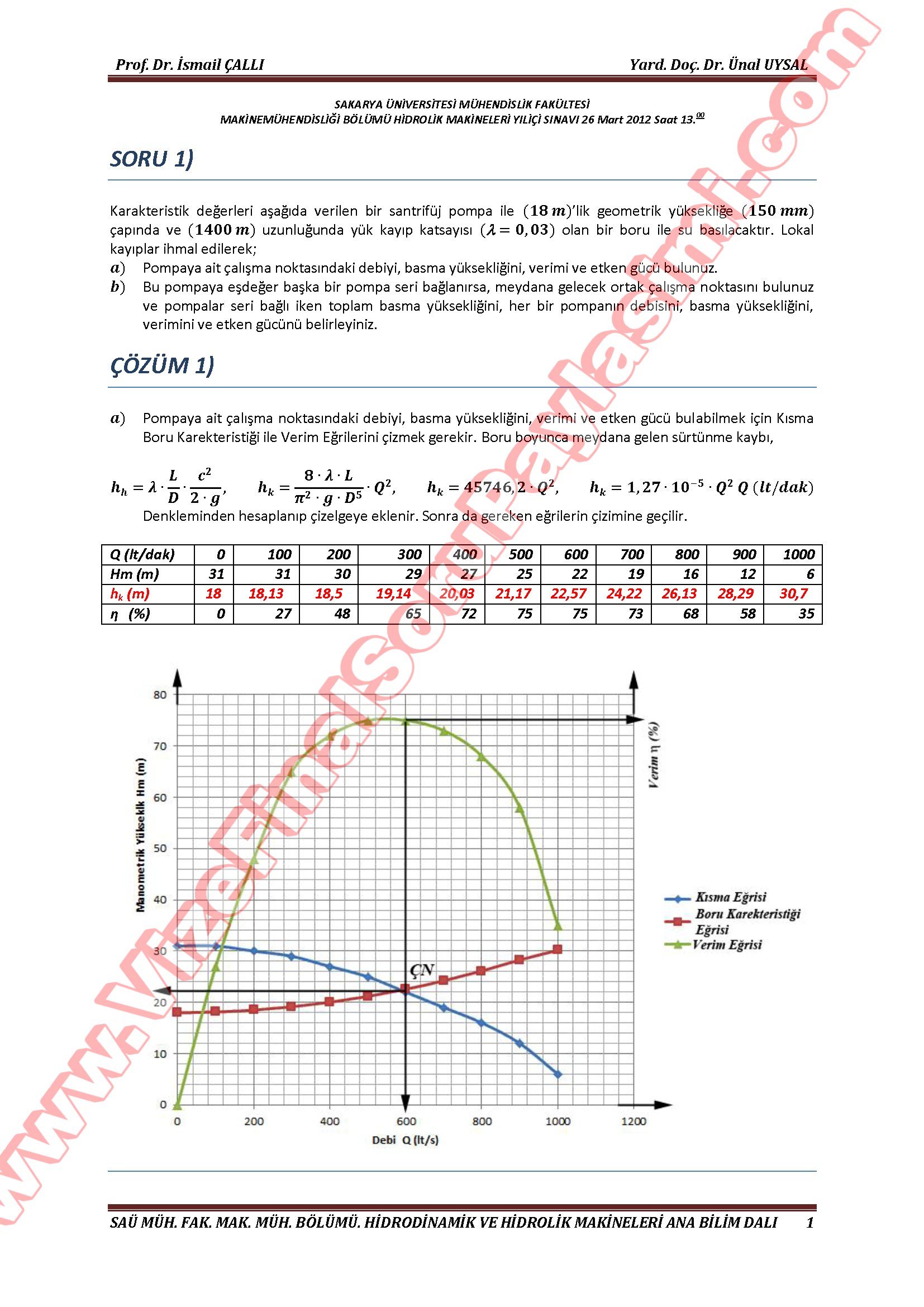 Vize ve Final Soruları / Sakarya Üniversitesi / Hidrolik Makinaları Dersi