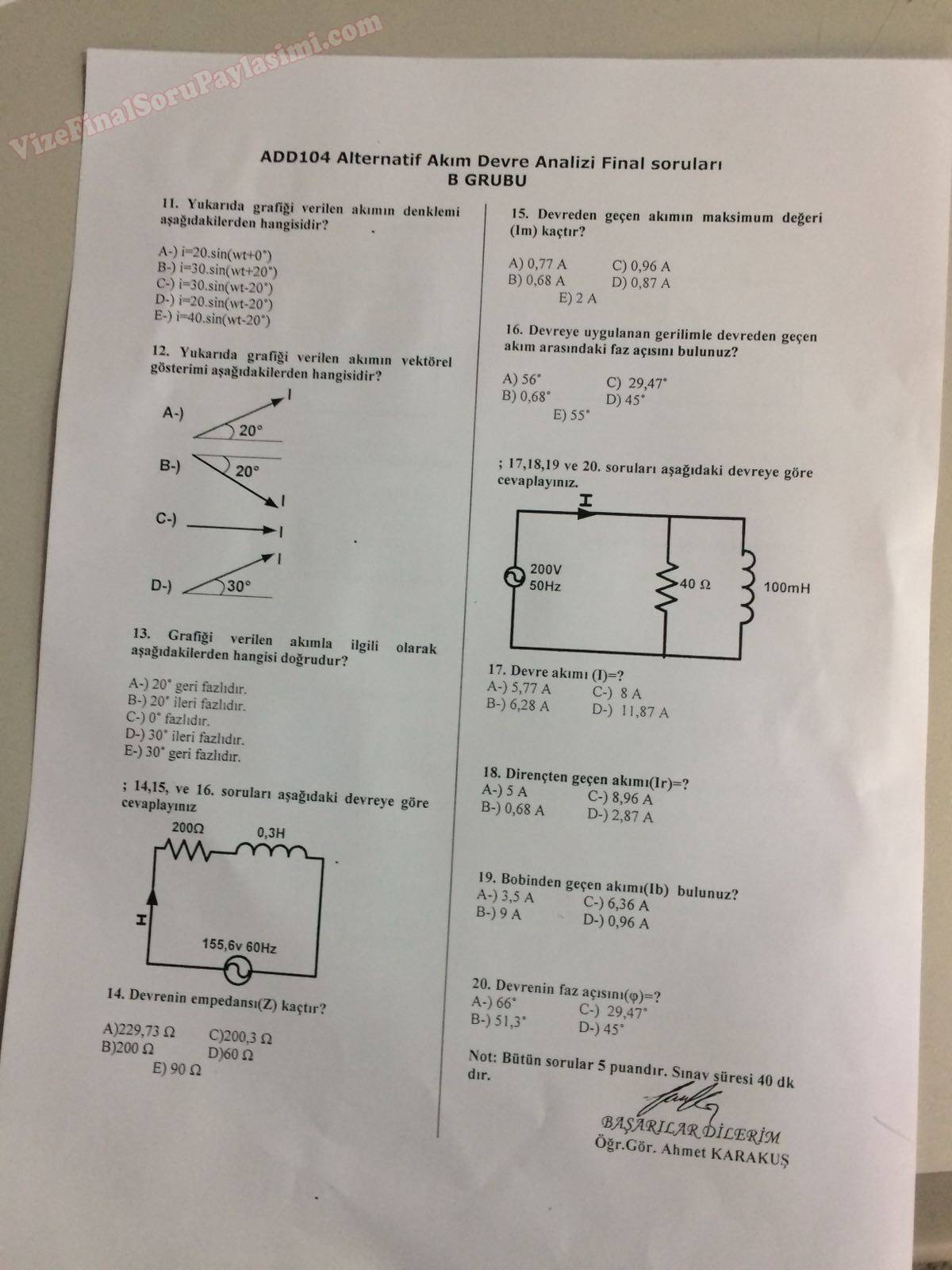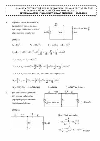 Alternatif akim devre analizi final soruları cevaplari cukurova
