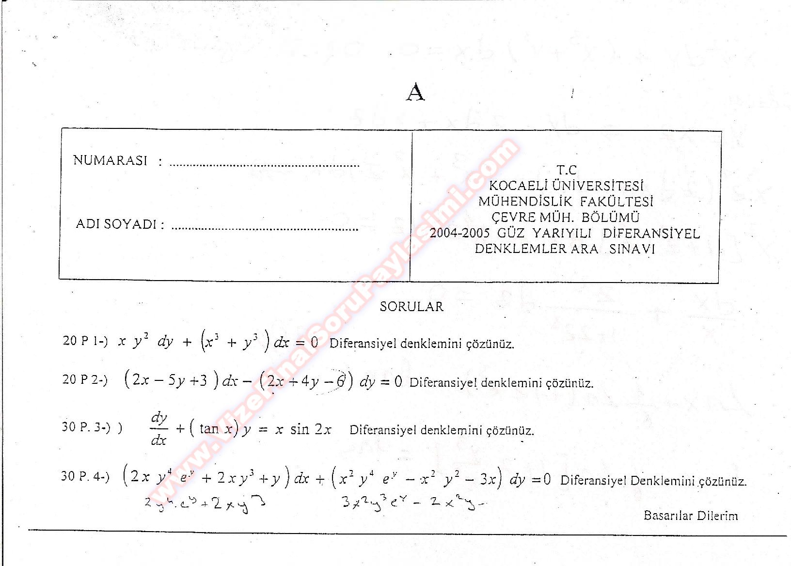 Diferansiyel Denklemler Yaz Okulu Vize Soruları Ve Cevapları-2012 12-12-2014, 15:01