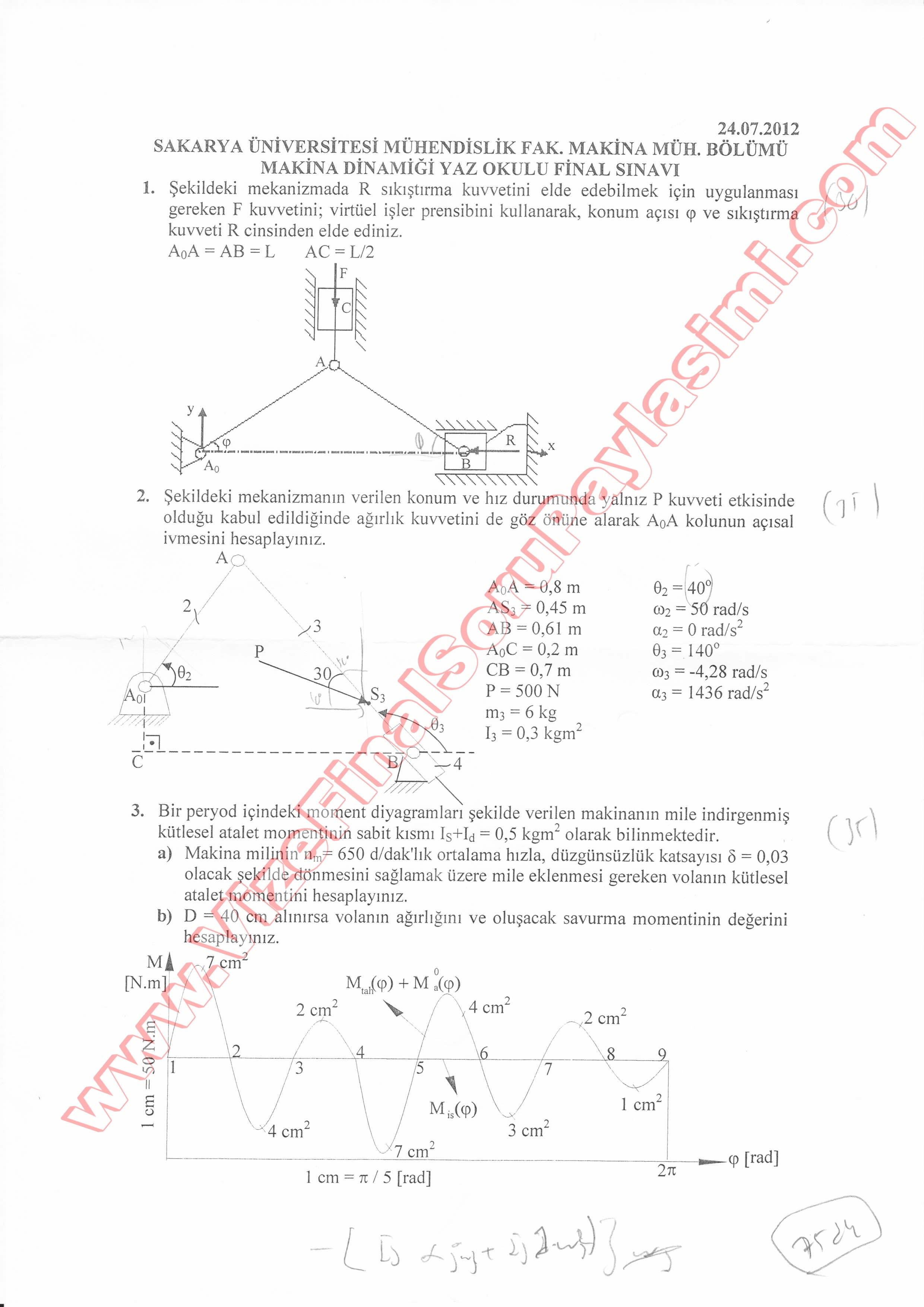 Makina Dinamiği Final Soruları-2013 17-12-2014, 20:47