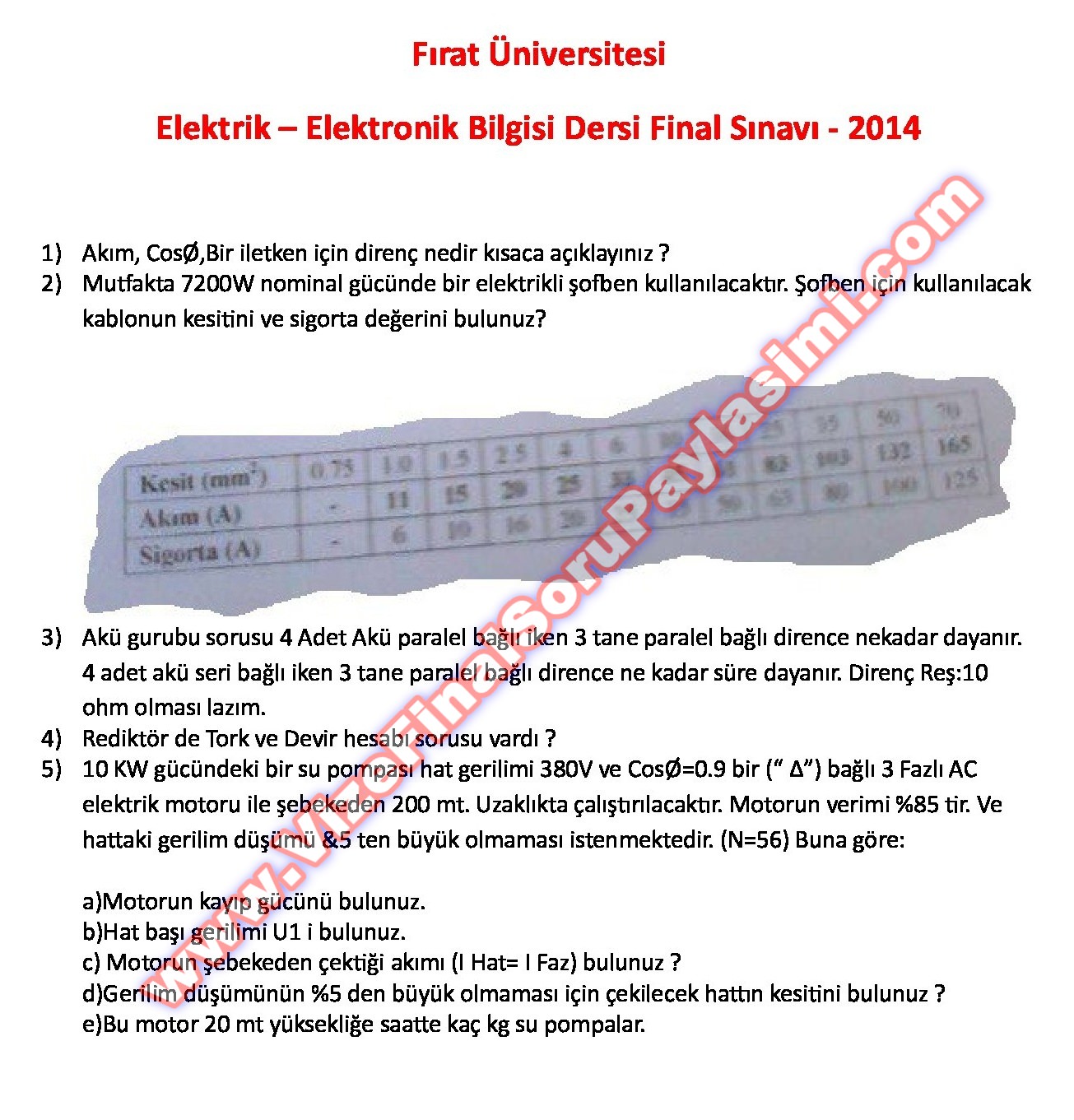 Vize ve Final Soruları / Fırat Üniversitesi / Elektrik Elektronik Bilgisi