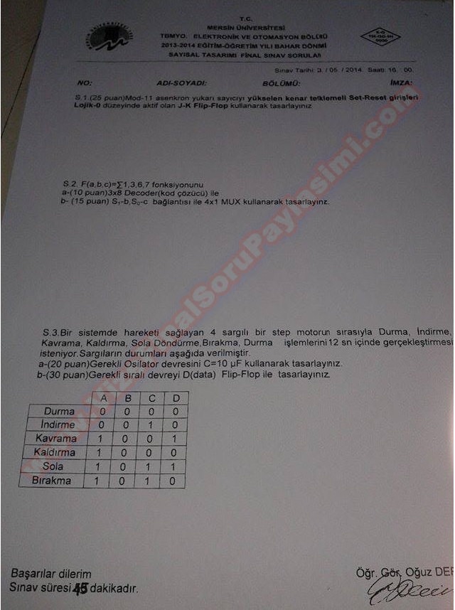 Vize ve Final Soruları / Mersin Üniversitesi / Sayısal Tasarım Dersi