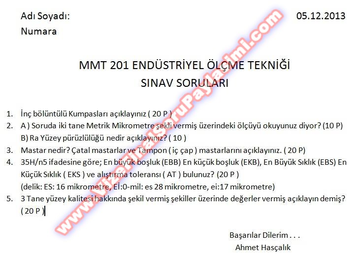 Endüstriyel Ölçme Sınav Soruları 16-07-2014, 19:58