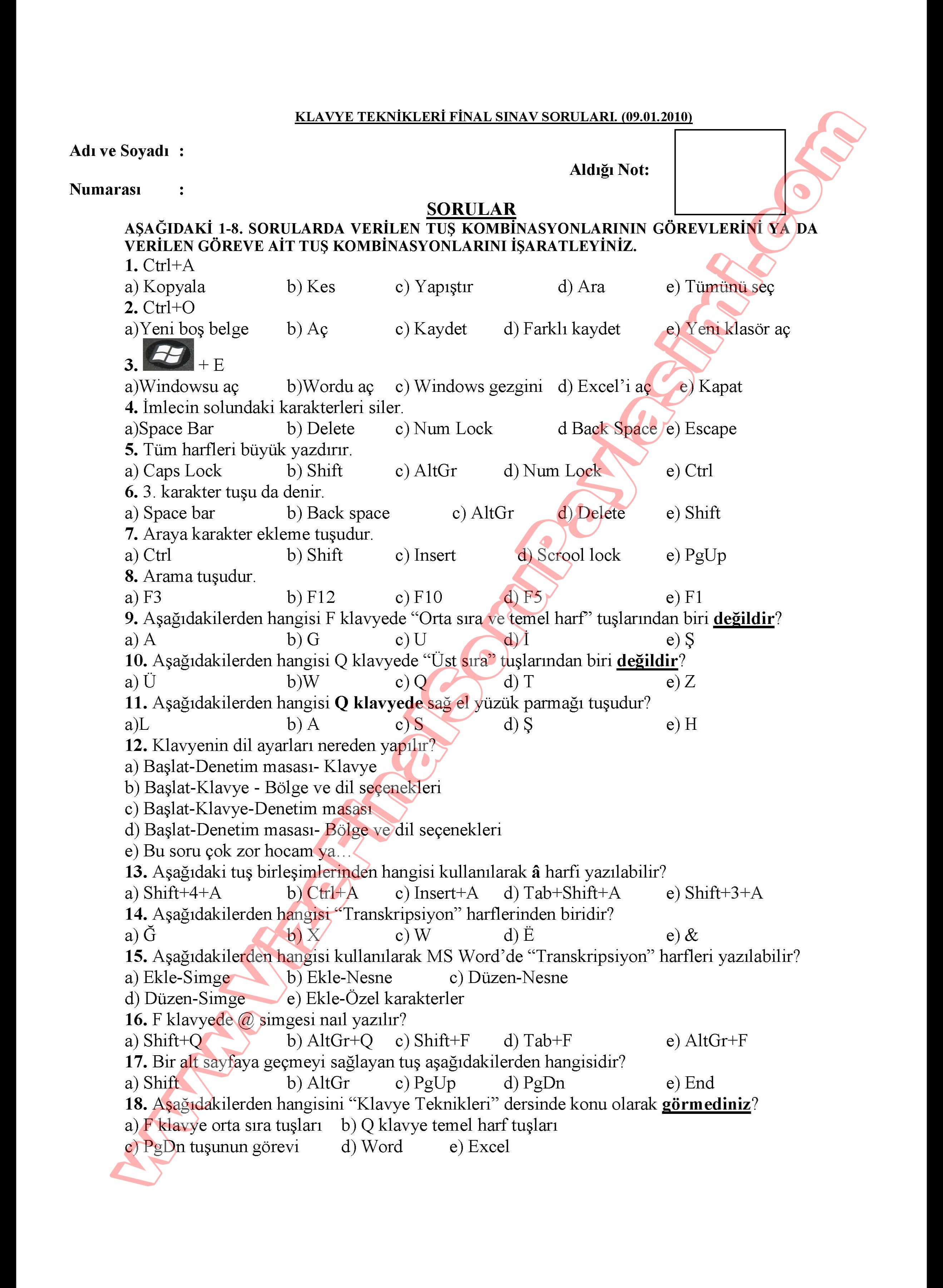 Vize ve Final Soruları / Adıyaman Üniversitesi / Klavye Teknikleri Dersi