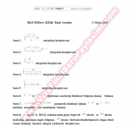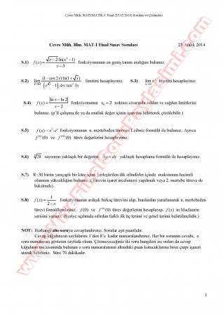 Matematik-1 Final Soruları Ve Cevapları