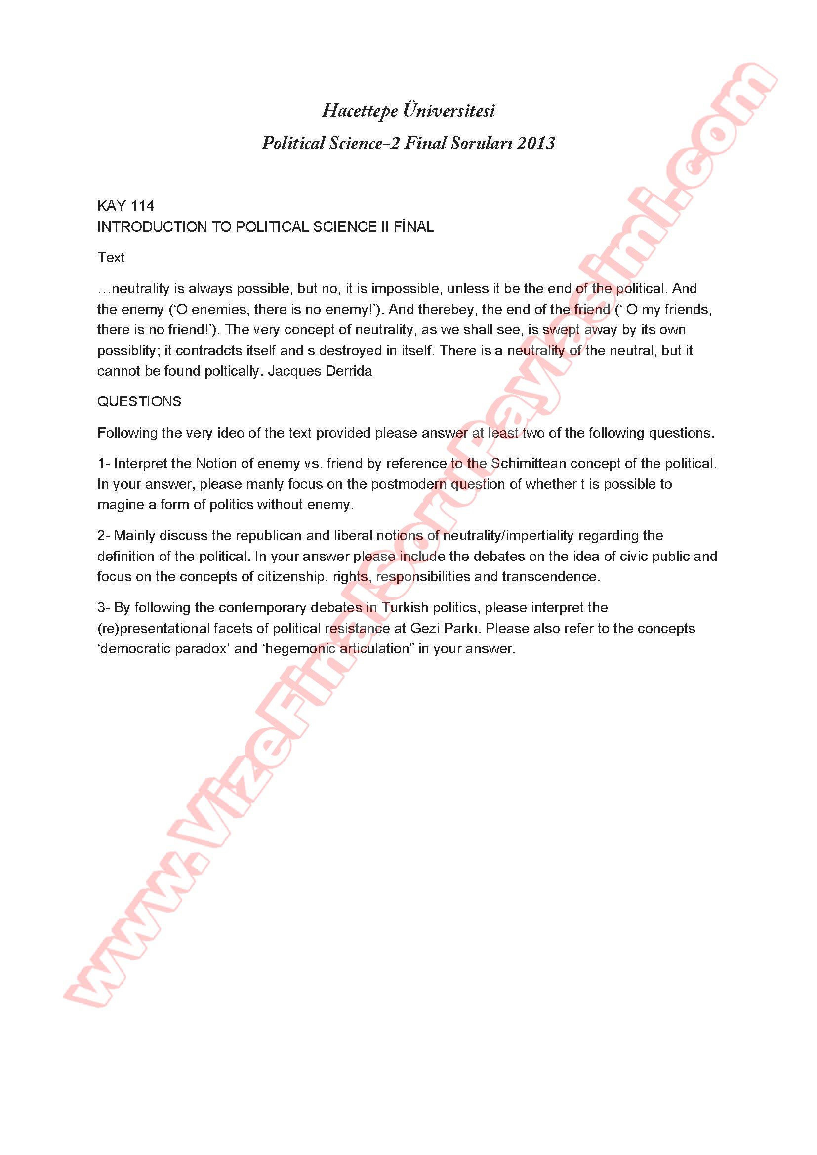 Vize ve Final Soruları / Hacettepe Üniversitesi / Siyaset Bilimi-2