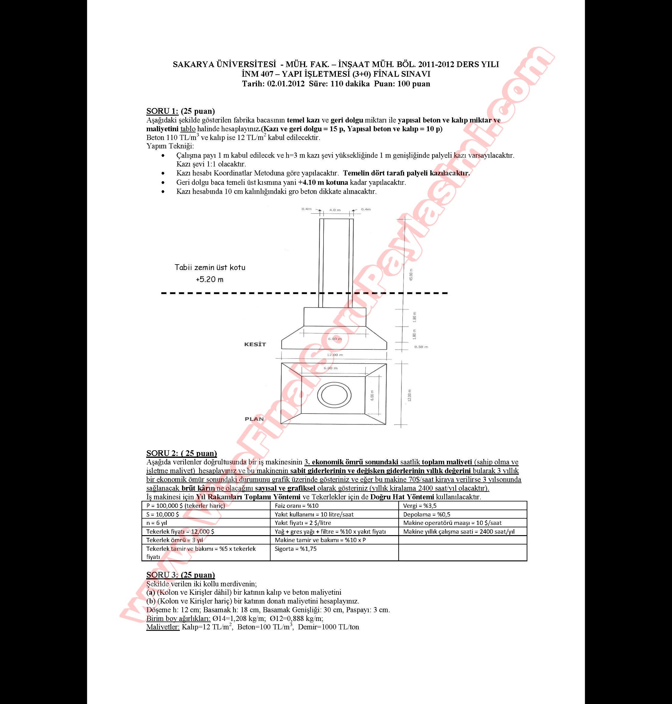 Yapı İşletmesi Final Soruları - 02.01.2012
