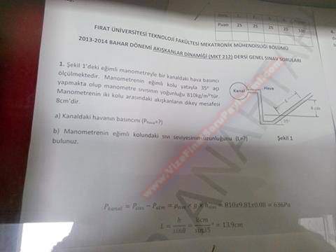 Vize ve Final Soruları / Fırat Üniversitesi / Akışkanlar Mekaniği -1