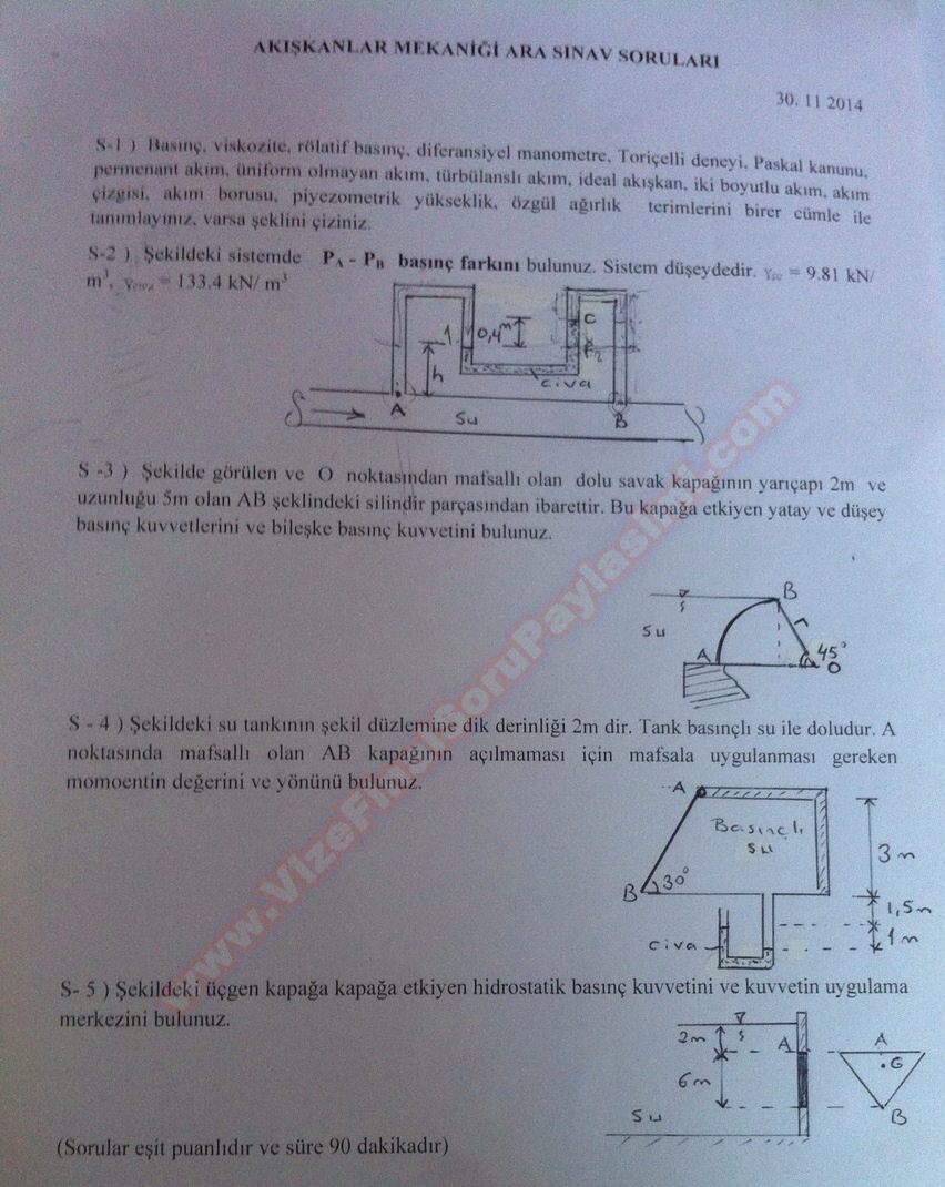Akışkanlar Mekaniği Vize Soruları - 2011 21-09-2014, 14:37