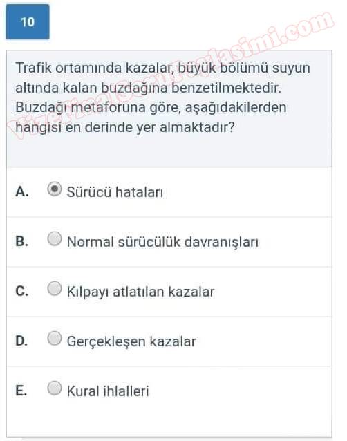 Trafik Güvenliği Dersi Sınav Soruları 13-05-2018, 01:28