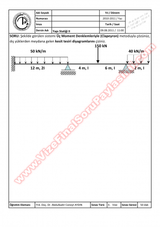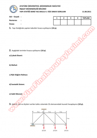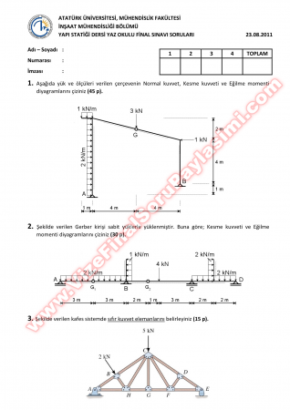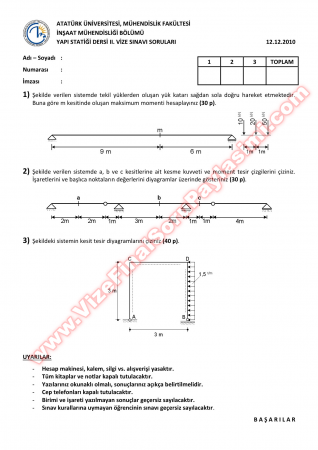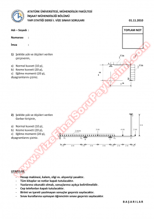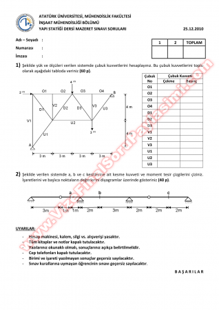 Vize ve Final Soruları / Erzurum Atatürk Üniversitesi / Yapı Statiği Dersi