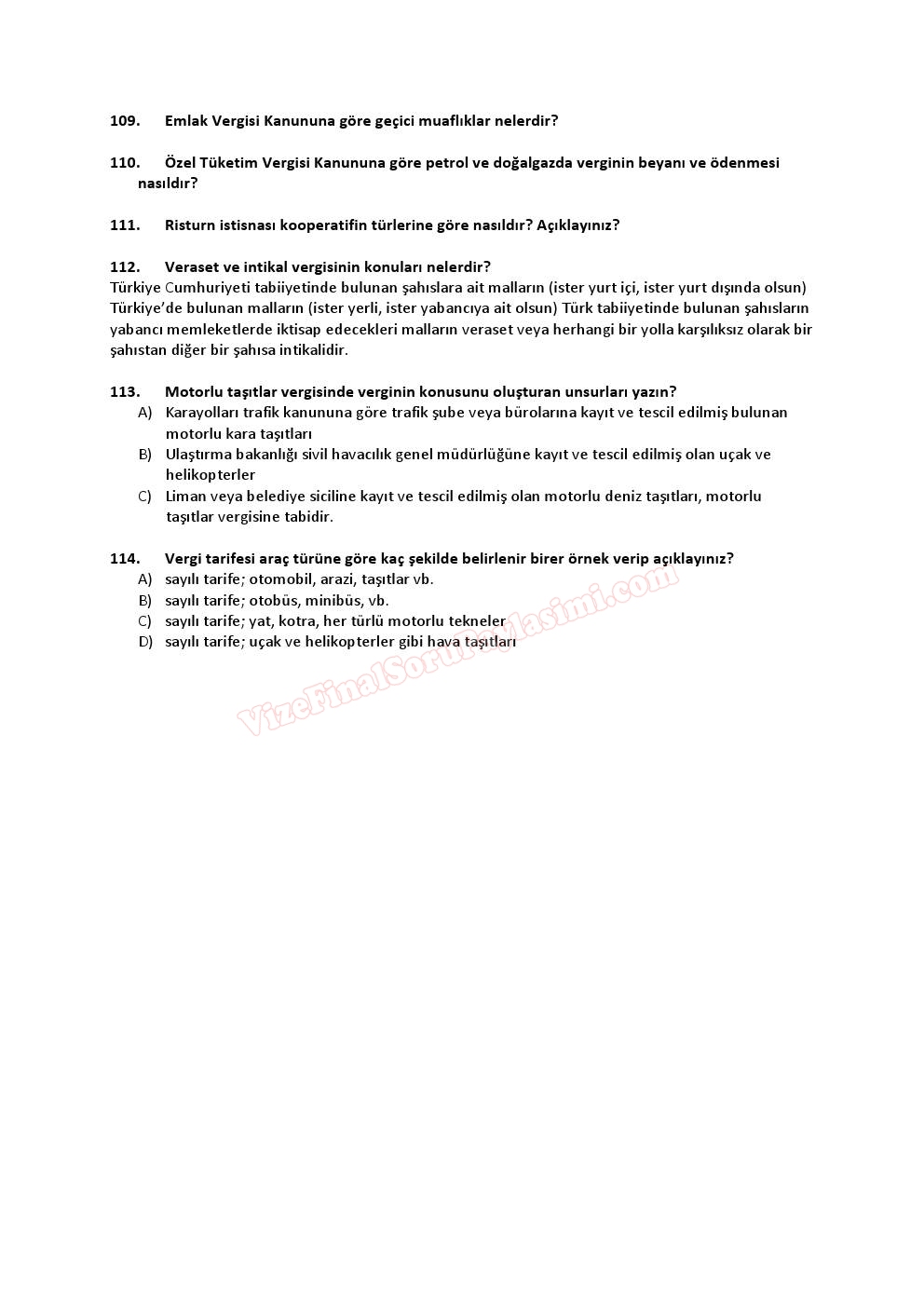 Vize ve Final Soruları / Balıkesir Üniversitesi / Türk Vergi Sistemi Dersi