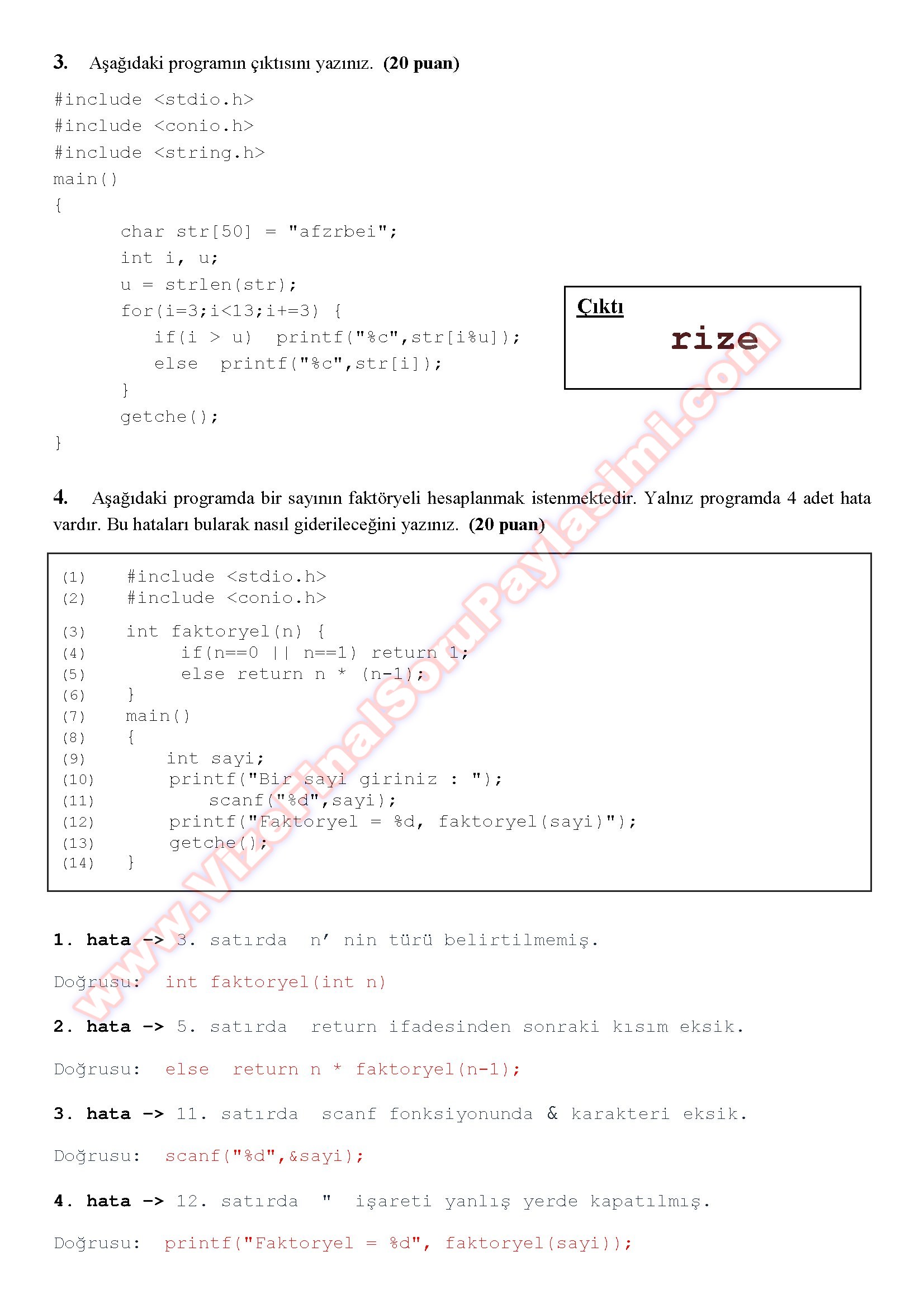 Vize ve Final Soruları / Recep Tayyip Erdoğan Üniversitesi / Programlama Temelleri Dersi