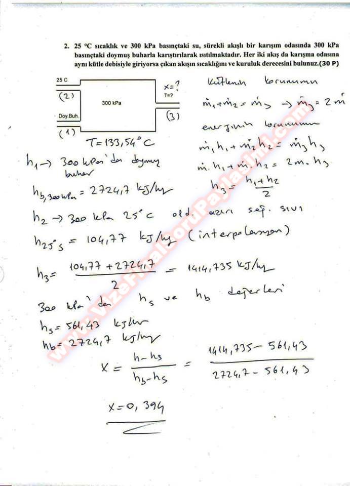 Vize ve Final Soruları / Mustafa Kemal Üniversitesi / Termodinamik-1