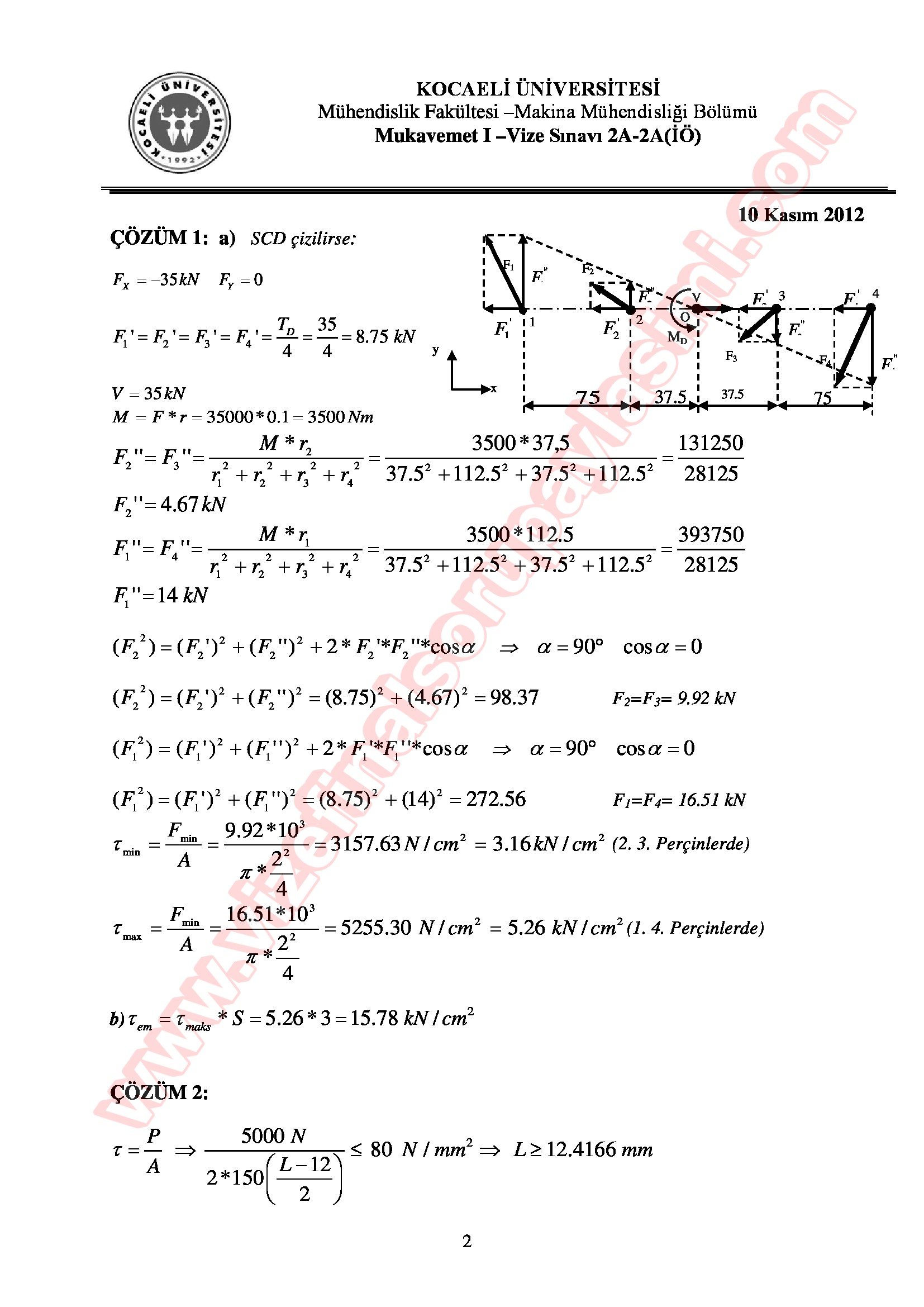 Vize ve Final Soruları / Kocaeli Üniversitesi / Mukavemet-1