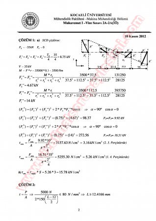 Mukavemet-1 Vize Soruları Ve Cevapları-2012