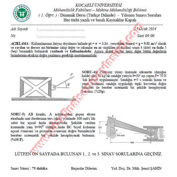 Vize ve Final Soruları / Kocaeli Üniversitesi / Dinamik Dersi