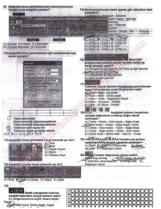 Vize ve Final Soruları / Tunceli Üniversitesi / Temel Bilgi Teknolojileri Dersi
