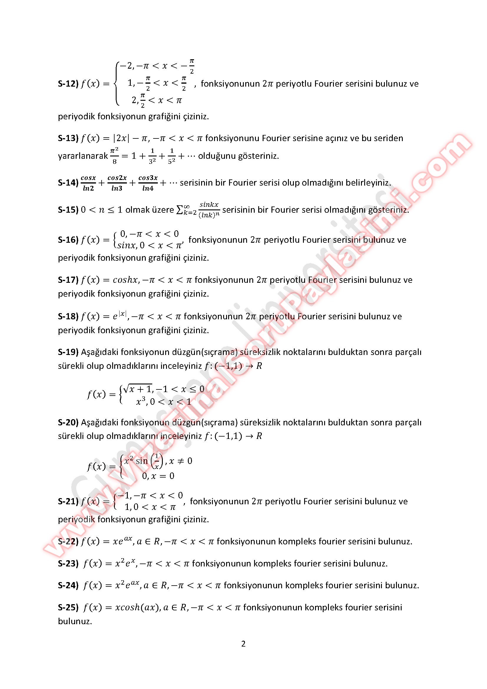 Fourier Analizi Ara Sınav Çalışma Soruları