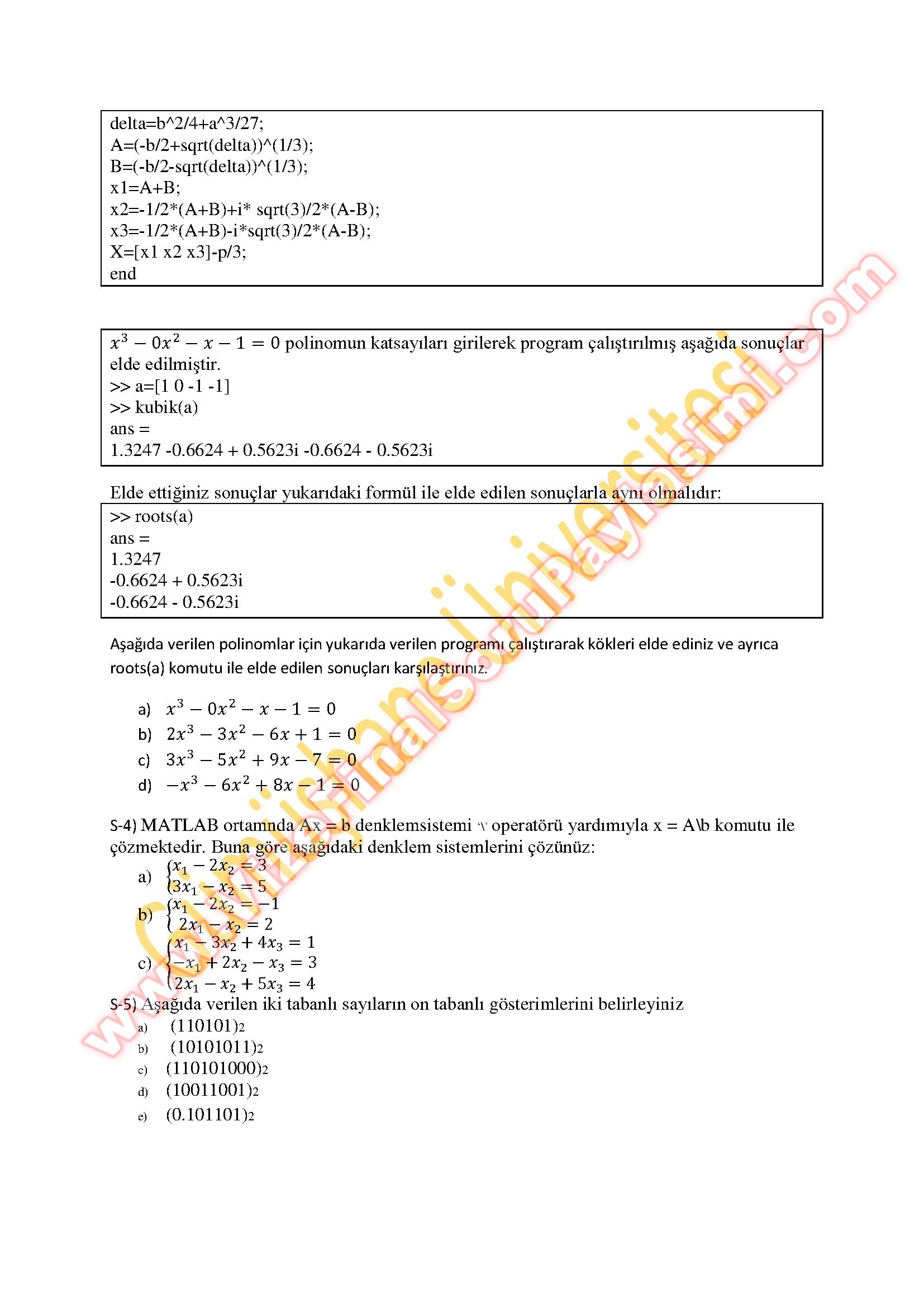 Matematik -2 Ara Sınav Çalışma Soruları 29-03-2015, 04:38